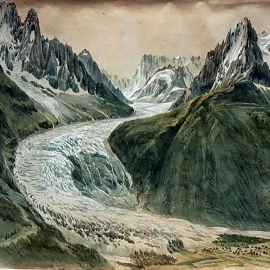 В 19 веке ледник Мер де Глас был настолько велик, что почти достигал поселений в долине Шамони (горная долина во французских Альпах, расположенная у подножия самой высокой вершины Европы Монблана. Также одна из старейших и самые знаменитые горнолыжные курорты мира, где прошли первые зимние Олимпийские игры в 1924 году. — Ред .)
