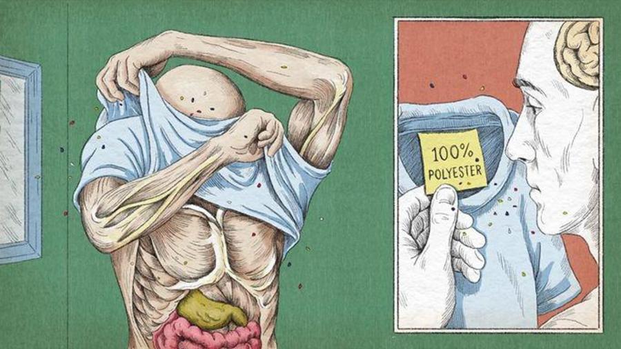 Когда вы надеваете синтетический свитер, встряхиваете его, стираете или просто носите, он постоянно «сбрасывает» микроскопические волокна. Они настолько малы, что зависают в воздухе, как пыль. И с каждым вдохом мы можем поглощать их.